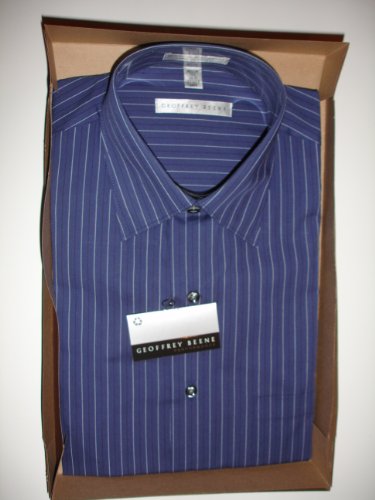 - Mens Designer Dress Shirt Geoffrey Beene Men's Long Sleeve-Wrinkle Free With Pocket Color Deep Sea 15.5" neck 34/35 Medium Size
